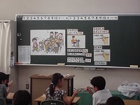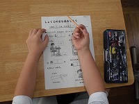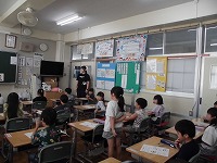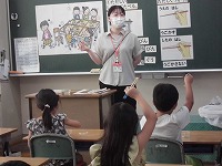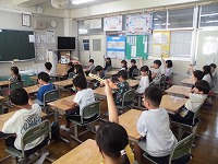 給食センターから栄養教諭の先生が来校され、1年生の教室にて「食の指導」をしていただきました。正しい姿勢や箸の持ち方をわかりやすい言葉で説明してくださいました。