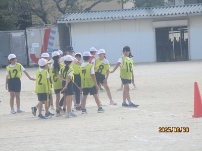 今日の段階では、2チーム対抗の競争です。初めの時よりの、今日の学習では「10秒以上」タイムを縮めています。学習が進めば、4チーム対抗の本格的な競争になっていきます。引き続きのがんばりを、期待しています。