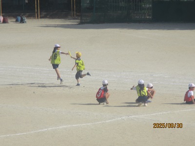 今日の熱戦は、4年生のリレーの学習です。バトンゾーンでのバトンパスの仕方をきちんと先生から指導された子供たちは、その成果をいかんなく発揮していました。