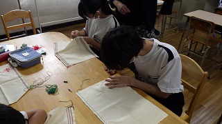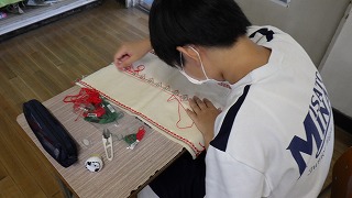 コスモス学級の家庭科では、スウェーデン刺繍を行っています。