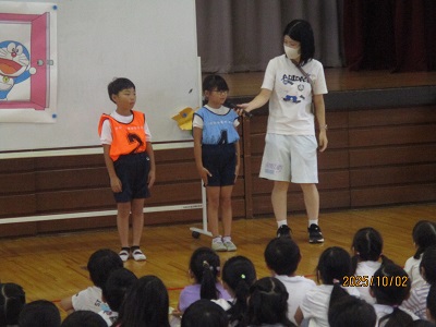 10月の全校朝会は、表彰と生活目標、校長講和の3つの内容です。