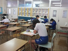 「どよごご」は、中学生の自習教室で、中学生が家庭での予習・復習や中間・期末テスト・入学試験などの対策に活用するとともに、自主性と学力を養成することを目的として行われる教室です。