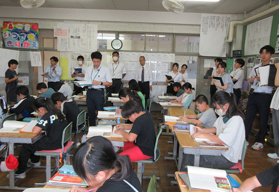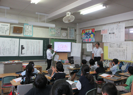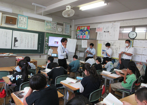今日は、4年生の国語で研究授業を行いました。物語文「ごんぎつね」の単元です。「ごんの気持ちを想像しよう。」というめあてで学習しました。みんな真剣に考え、タブレットを有効活用し、自分の考えを伝え合うことができました。指導者の先生からもお褒めの言葉をいただきました。