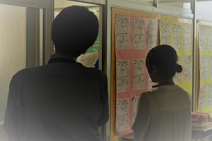 また午後には、午前中から参加の先生とともに、他の小学校5年目の先生方も加わり総勢32名の先生方が2年生の国語の授業を参観されました。授業は、放送作家向田邦子さんの随筆「字のない葉書」を題材に、「父親の人物像について読みを深めよう」という課題で始まりました。普段とかなり違う環境の中で、相当緊張もしたと思いますが、集団学びを通して学びを深めていました。