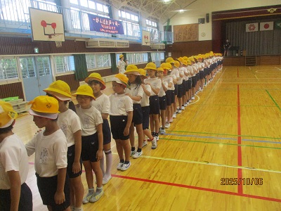 運動会本番に向けて、各学団とも順調に練習が進行しています。集団演技の見せ場である表現の運動で、現時点では体育館の練習が中心です。3年生は、タイミングを合わせての一糸乱れぬ動きを作ろうと、一生懸命頑張っています。