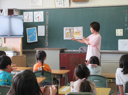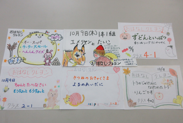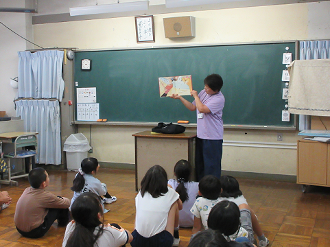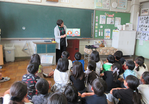 今日は、1年生、2年生、4年生、ひばり学級でおはなしクレヨンさんによる本の読み聞かせがありました。子どもたちは、目を輝かせながらお話を聞いていました。おはなしのクレヨンさん、いつも素敵なお話をありがとうございます。