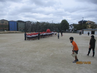 台風の影響からか強めの風が吹く中でしたが、運動会の第1回の全体練習会を実施しました。