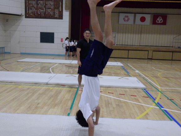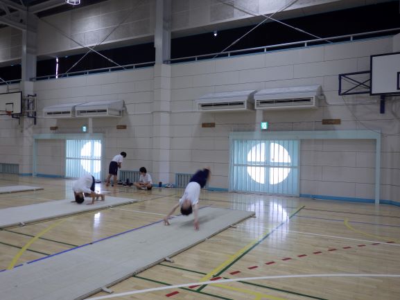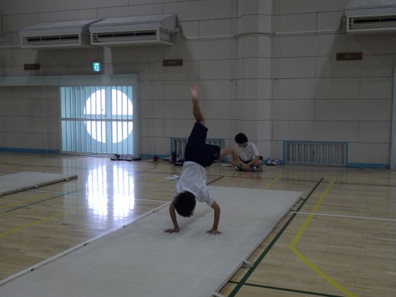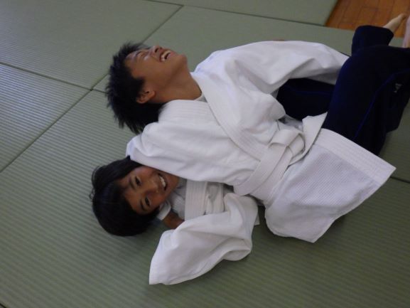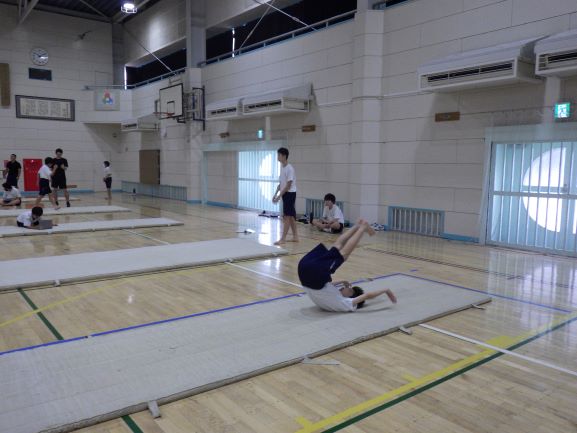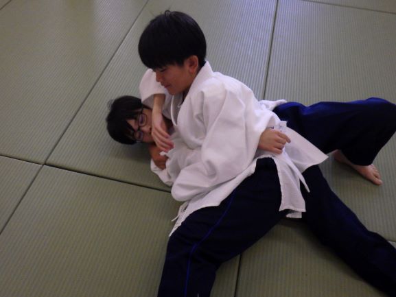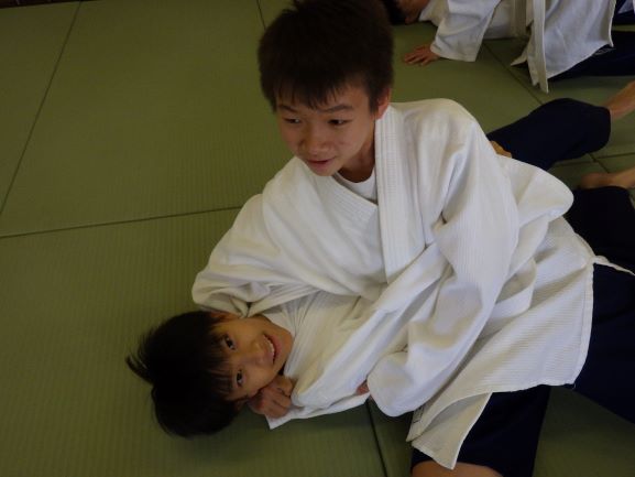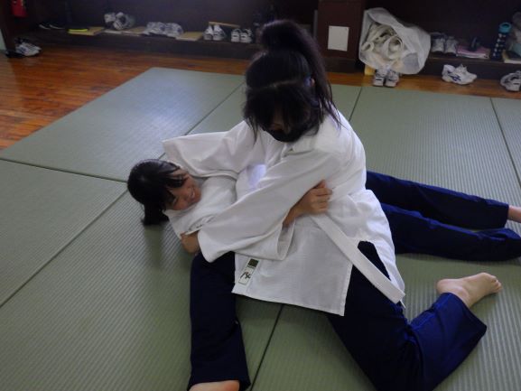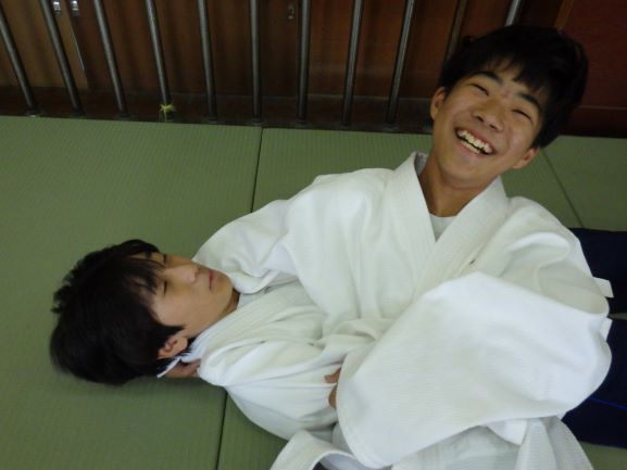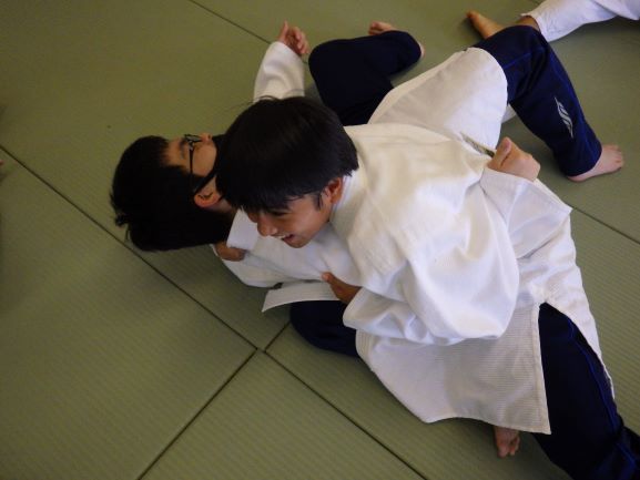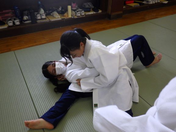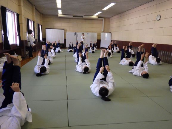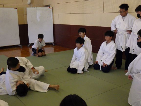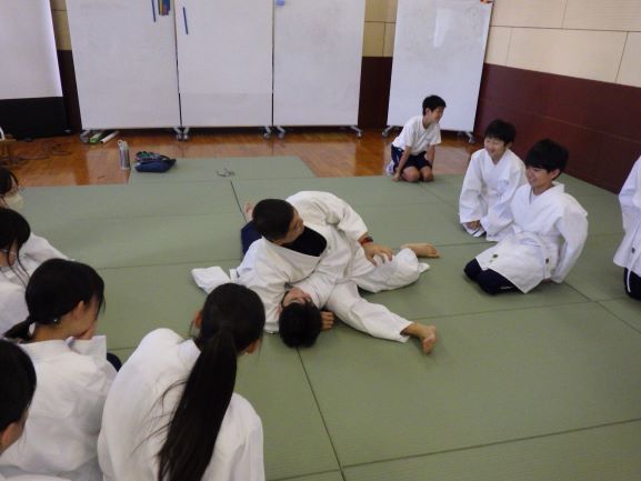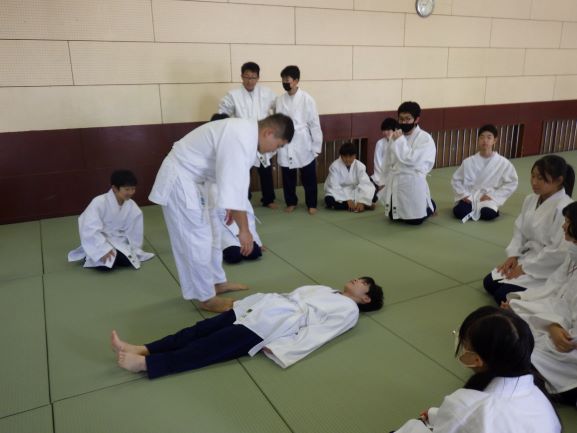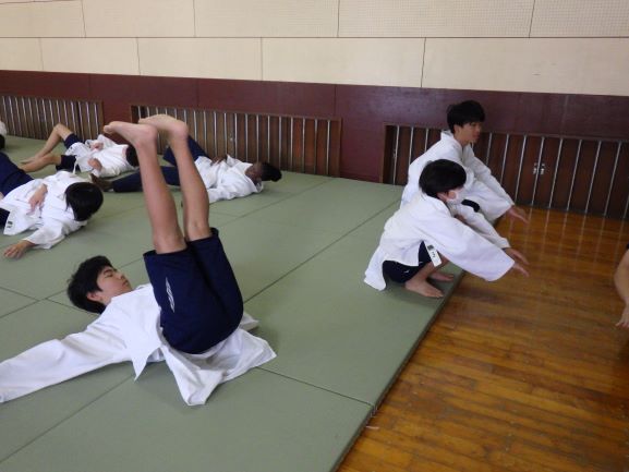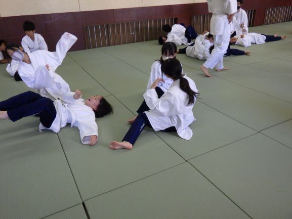 実際に道着を着て、受け身などの基本の動作を練習していました。