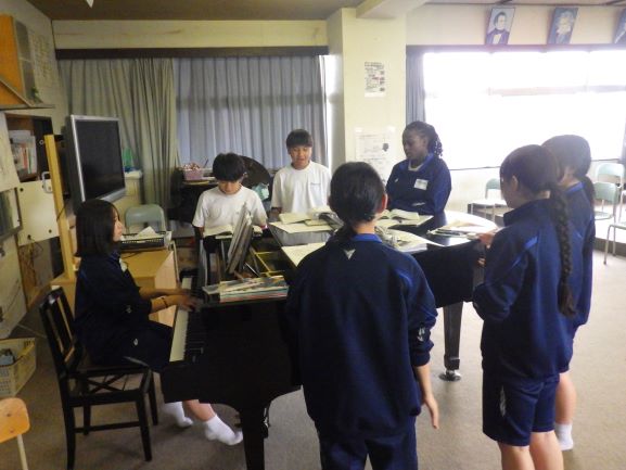 音楽では、アルトリコーダーを吹いたり、音楽祭に向けて合唱を行っていました。