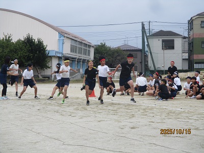 今日の紅白の対抗リレーでは、一歩でも前へ進もうという意気込みが伝わってくる走りです。