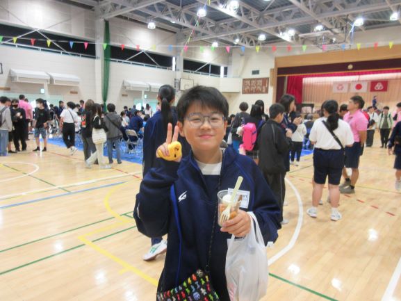 1年生ブースのフランクフルトと冷やし大学芋も多くのお客さんで溢れていました。