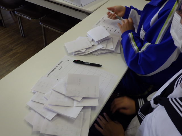 本日生徒会選挙が行われました。立会演説会では、立候補者と推薦人の演説が行われ、各候補全校生徒に向け公約を訴えました。放課後開票作業が進んでいます。