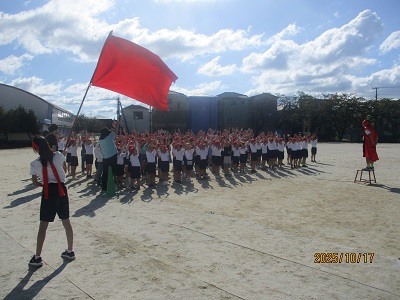 開会式の山場である応援合戦は、先攻がやや不利になります。紅組の皆さんには、この条件を吹き飛ばせるように、気持ちと声を合わせて応援合戦でがんばってください。後攻の白組の皆さんは、油断することなく練習の成果を発揮してください。