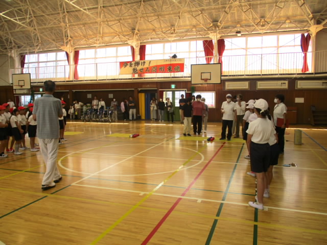 前半は学校から体育や保健の取組について説明し、後半は3・4年生対象の授業を公開しました。
