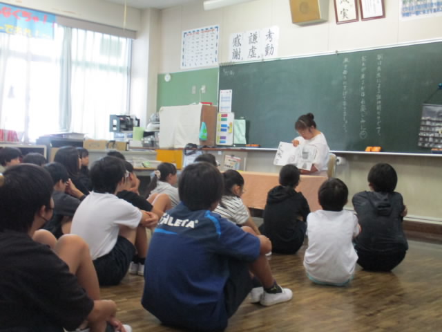 今回は、担任の先生以外の先生が各教室に行き、読み聞かせをしました。